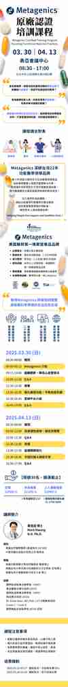 Metagenics 原廠認證培訓課程-功能醫學運用與實踐 (2025.03.30, 2025.04.13)