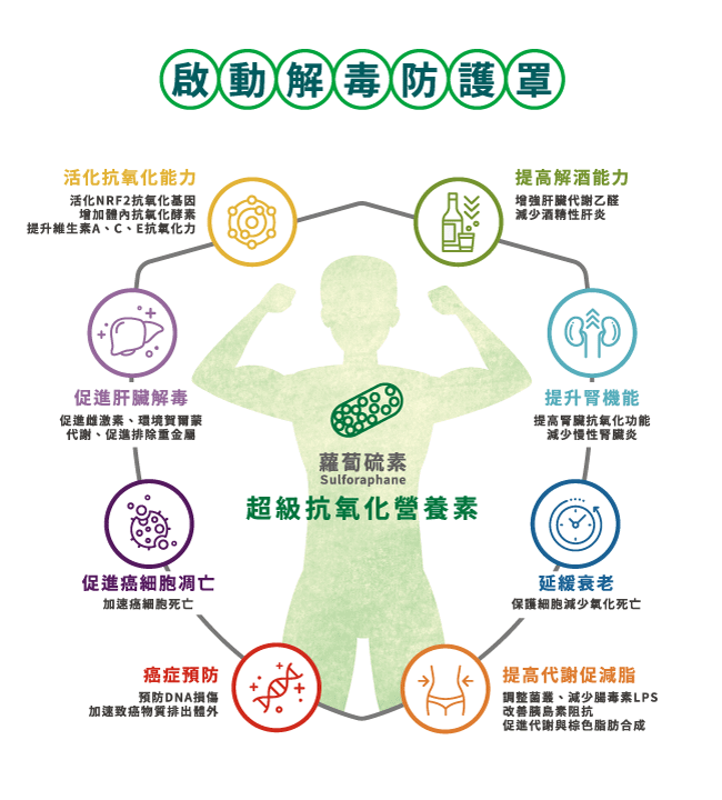 獨特的青花菜萃取物配方 Brassinase™支持身體抗氧化和排毒能力